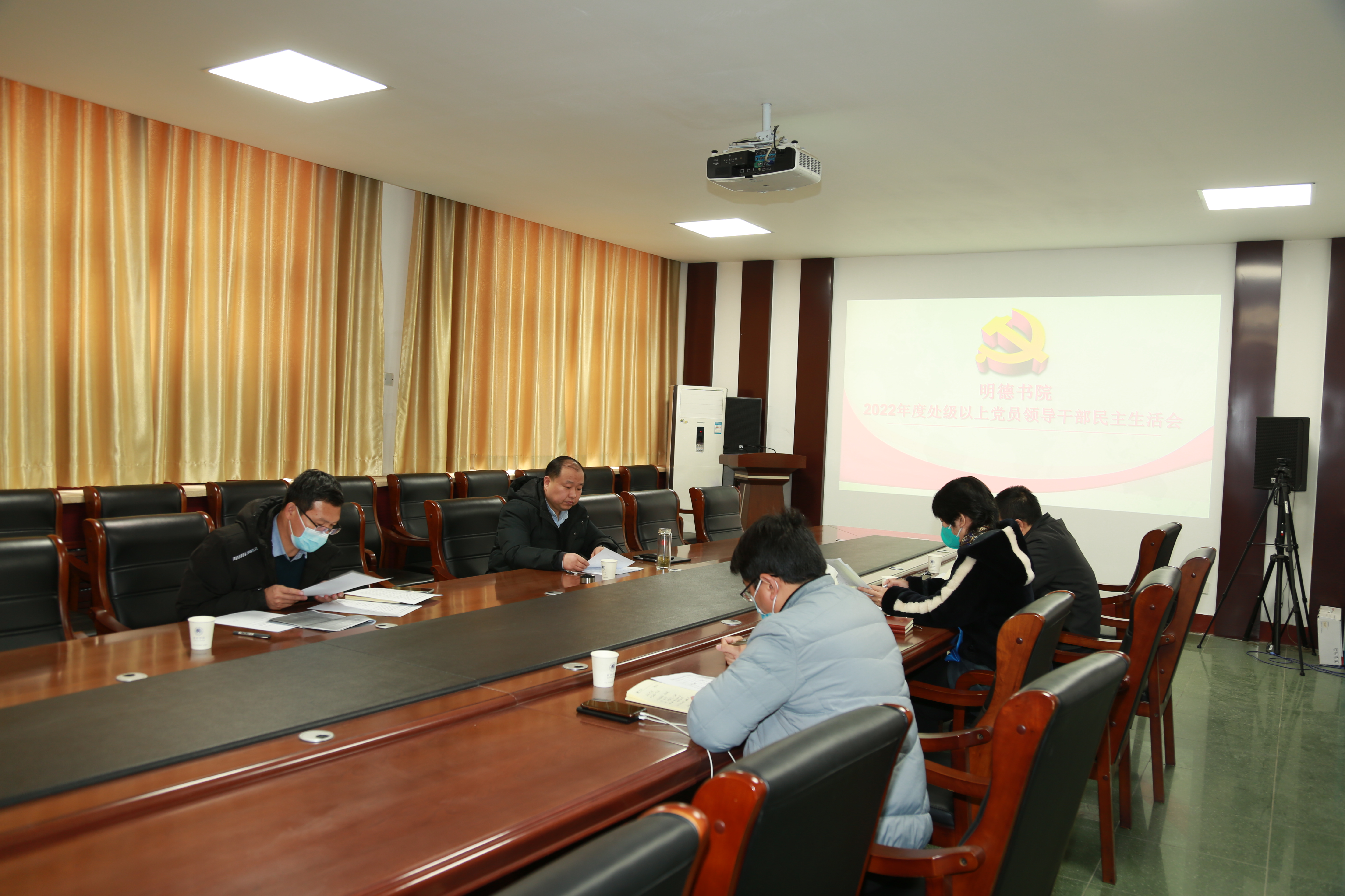 在207会议室召开2022年度处级党员领导干部民主生活会,书院处级以上党员领导干部参加会议。会议由书院党委书记魏朝举主持。