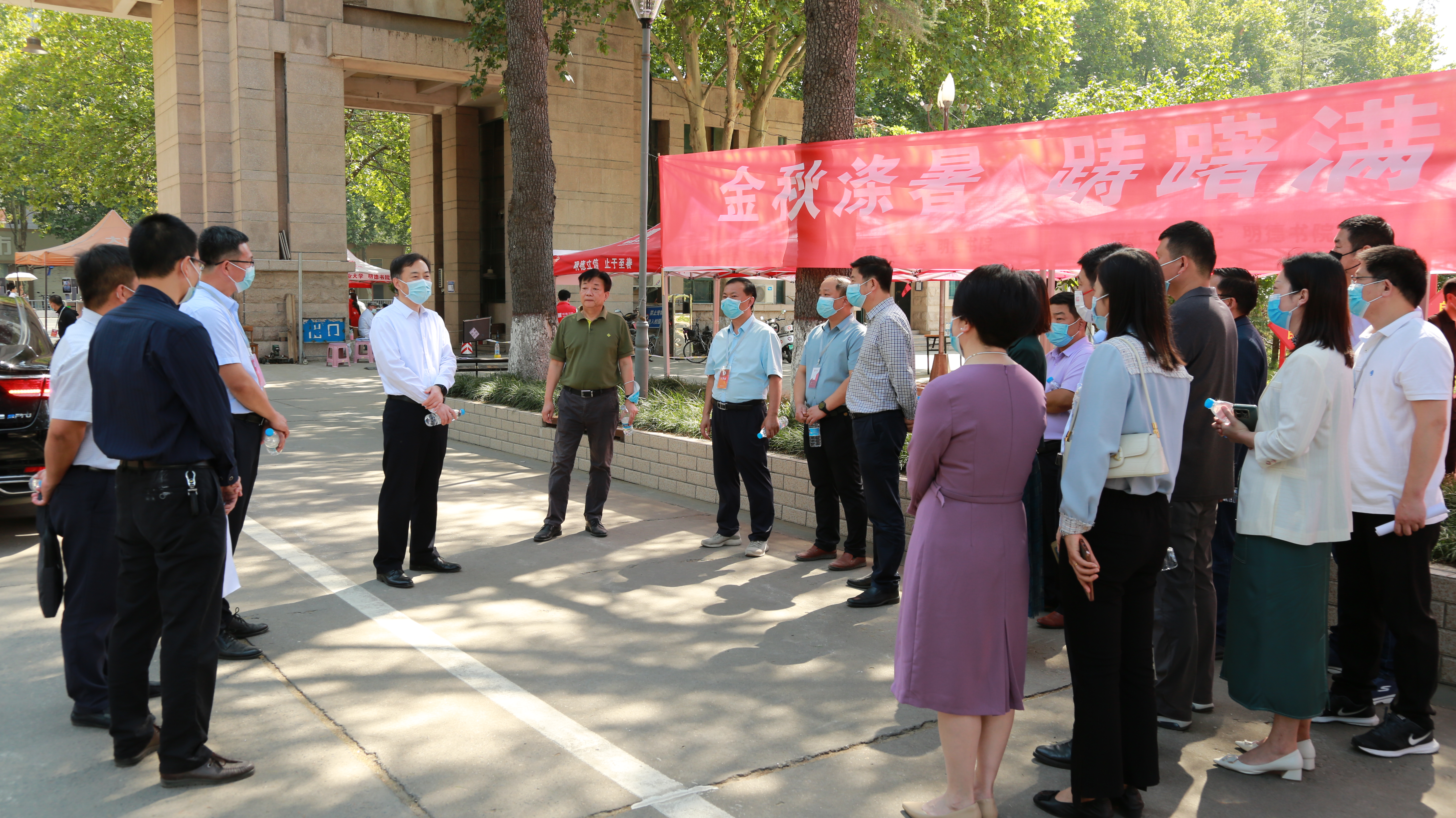 9月26日上午,校长李成伟,校党委副书记、工会主席李学雷,副校长李焕锋,在校长办公室、党委学工部、教学评估与质量管理中心、经济贸易学院和法学院相关负责人陪同下,深入嵩山路校区新生报到现场,慰问迎新工作人员和学生志愿者,与现场新生进行亲切交流,欢迎同学们入驻嵩山路校区,勉励同学们尽快适应大学生活,努力学习文化知识,开启大学新征程,书写人生新辉煌。