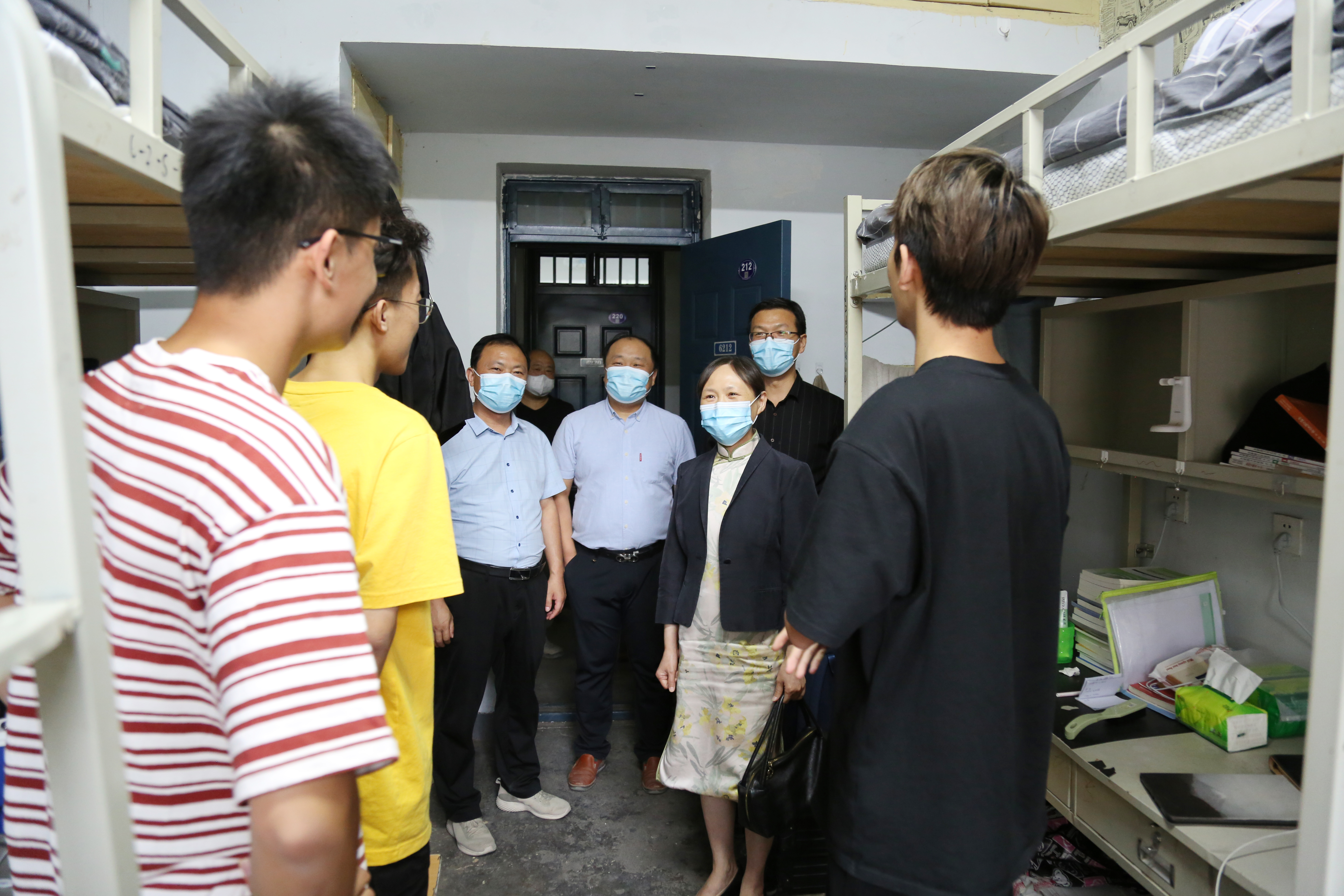 和新生宿舍,走访慰问了书院全体教工和报到新生,检查指导学生返校各项工作的进展情况。