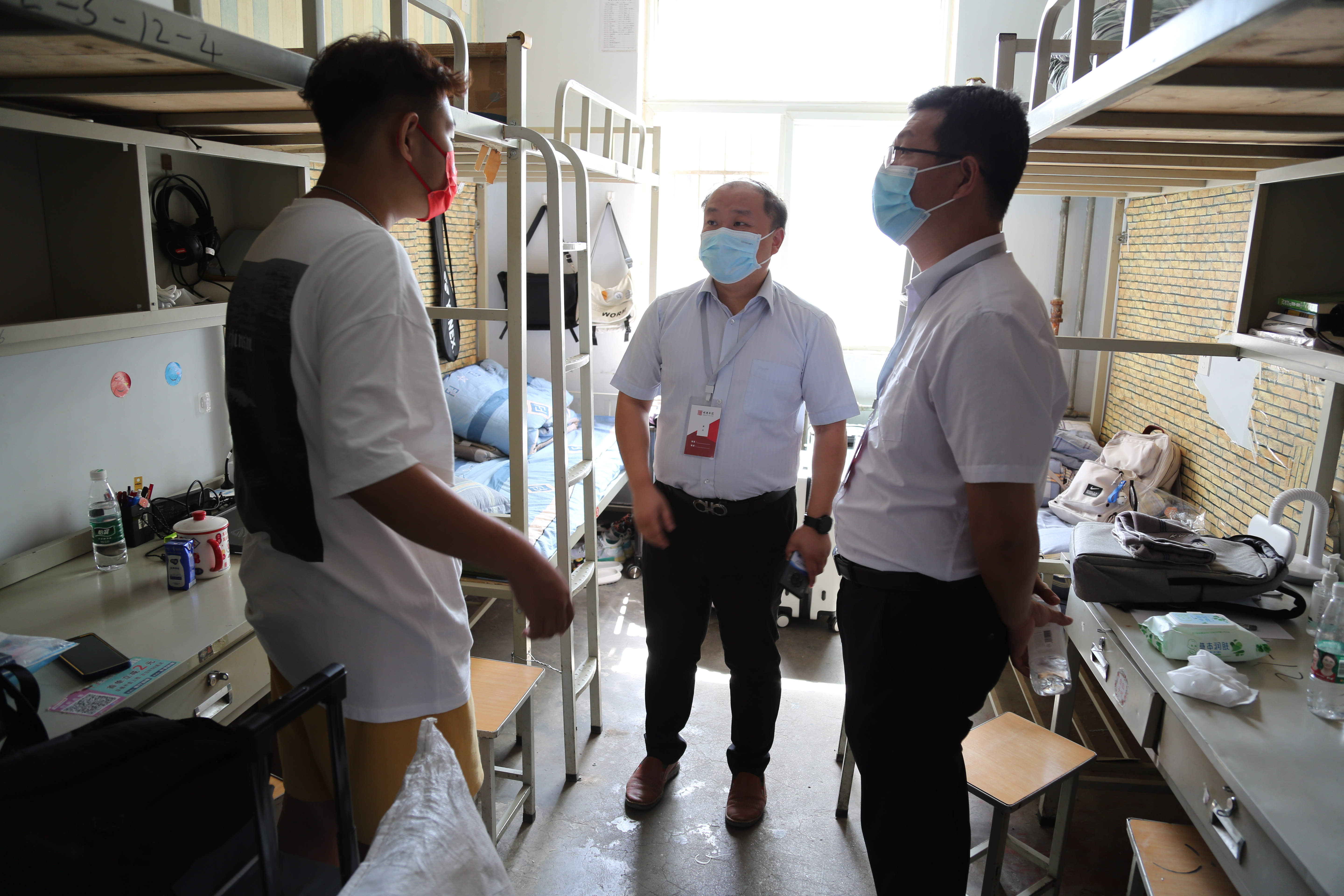党委书记魏朝举、院长谷存昌、副书记刘飞翔、学工办主任王荣健等老师深入学生宿舍和校园迎新现场,为已经恢复线下教学的高年级同学和参与迎新工作的师生送去关心和问候。
