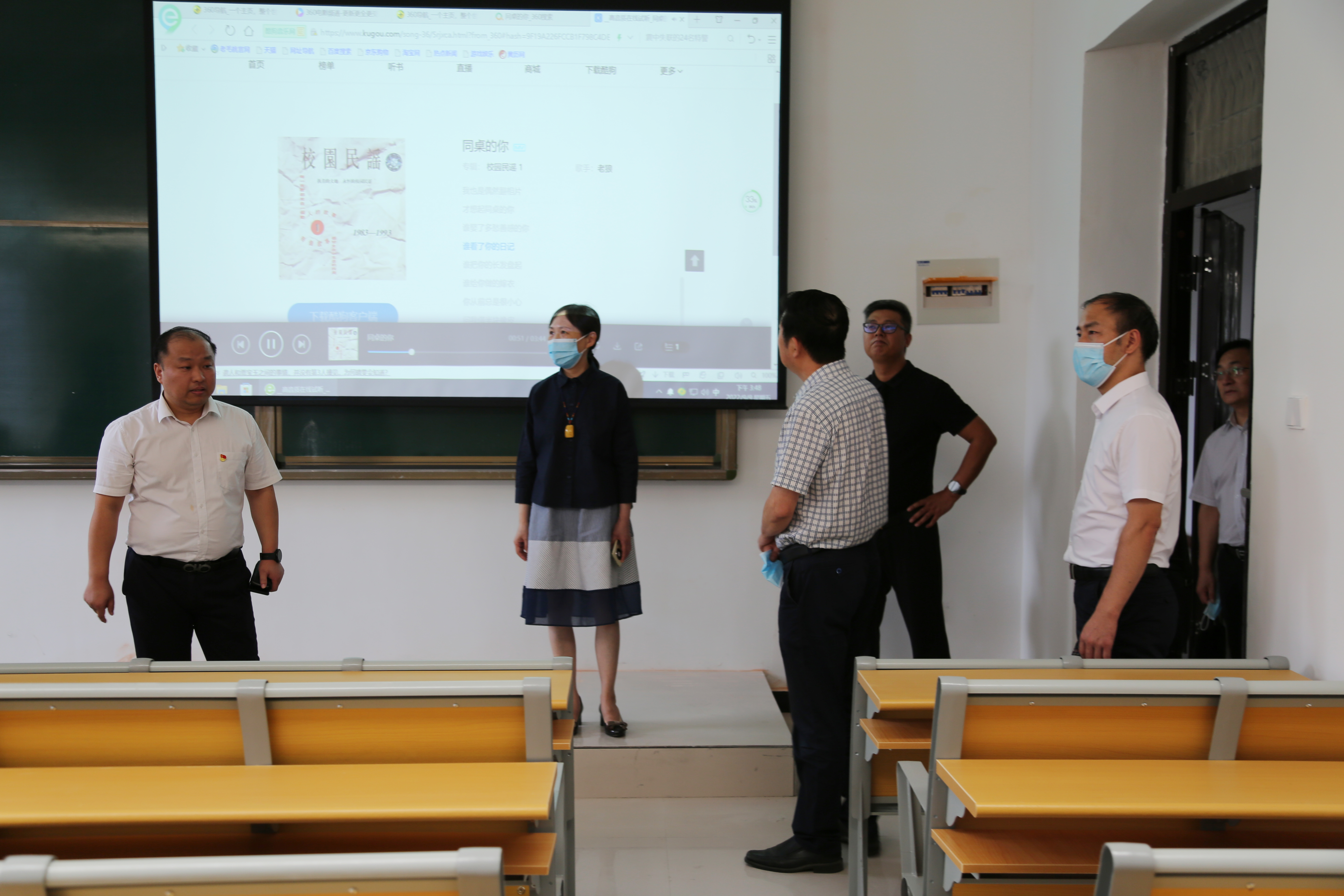 首先,曹健、李焕锋带领参会人员,在东校区相关单位的陪同下实地考察了嵩山路校区教学楼、实验楼、学生宿舍、餐厅、田径场、图书馆等办学条件,详细了解了开学前的各项准备工作。