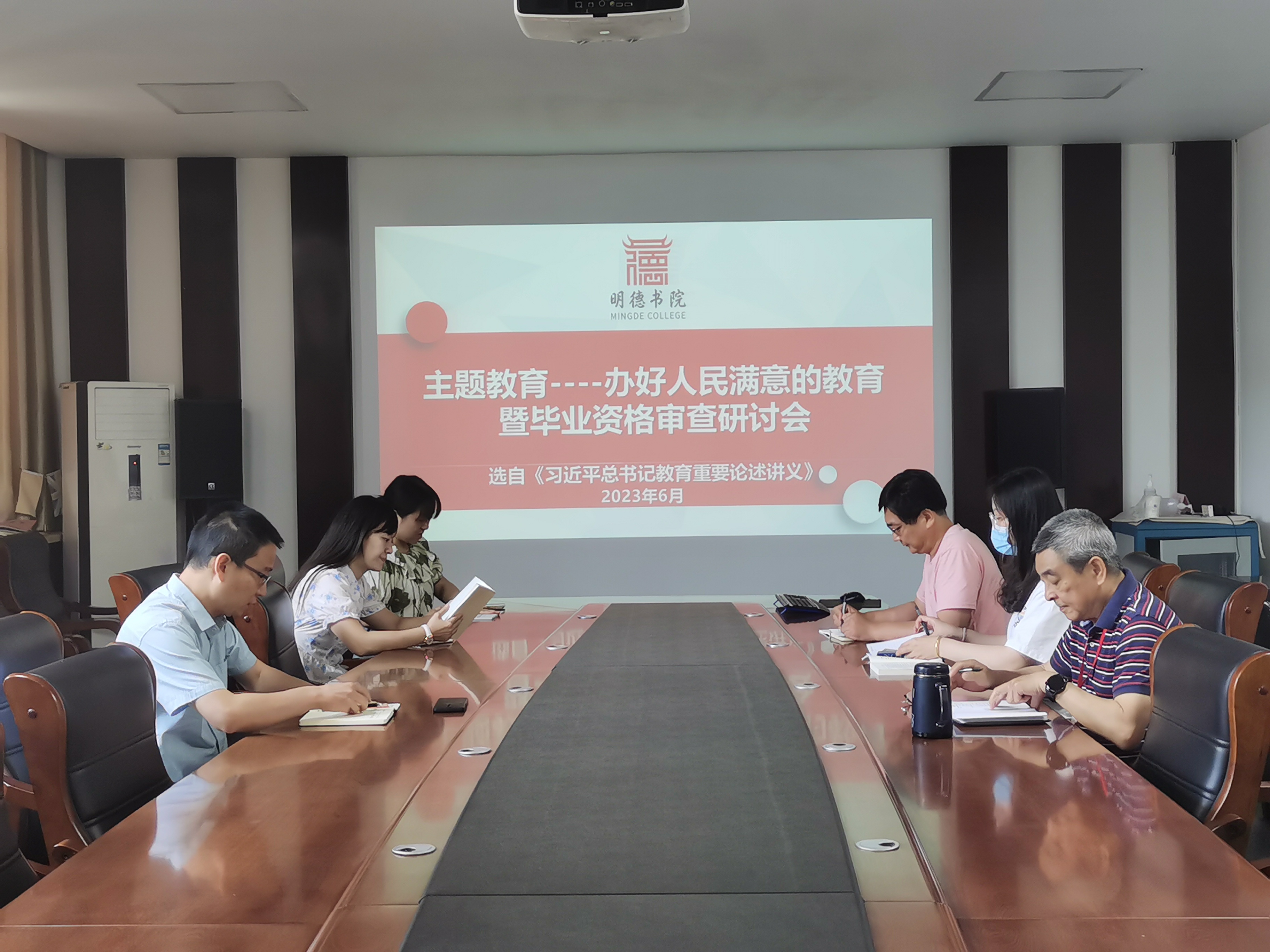 教学办全体教职工在办公楼207会议室进行了“办好人民满意的教育暨毕业资格审查研讨会”主题教育集中学习,副院长李震参加了研讨会,会议由教学办主任李自新主持。