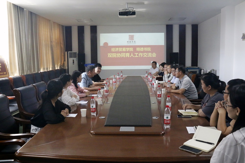 双院老师就学生日常管理、生涯规划、社会实践、挑战杯和升学就业等方面进行了深入研讨交流,共同分析了人才培养与双院协同育人模式下取得的成绩与存在的问题,为后续进一步有效推进双院协同育人作用的发挥积极建言献策。