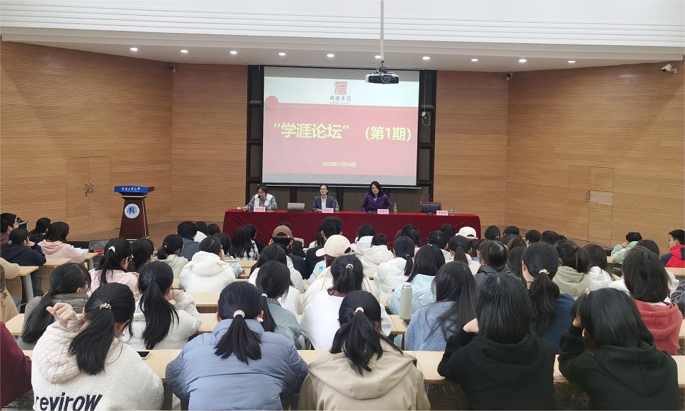 第1期“学涯论坛”在嵩山路校区学术报告厅成功举办。此次论坛特邀东方财富证券公司的资深讲师岳高岩、李琳琳和我校优秀校友郭素芬围绕“了解金融行业,做好学习与规划”进行了专题分享,2023级经贸类专业150余名学生参加了本次活动,活动由辅导员张佳晨主持。