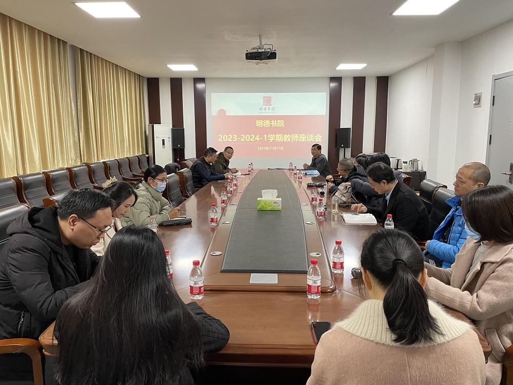 11月17日,召开了教师座谈会。教师代表分别从教学管理、教师教学和学生学习等三个方面,结合自身教学过程进行了发言交流。教师们普遍认为书院学生自信有想法,对知识有渴望,努力探索专业前沿理论和技术,课堂出勤率高,气氛活跃;书院学风建设活动成果显著,有利于培养学生形成良好学习习惯和学习风气;书院教学督导工作全面覆盖,反馈及时,彰显教学质量监控积极作用,营造良好“追求卓越”质量文化氛围;嵩山路校区教学环境、多媒体设备等硬件条件大幅度改善,师生满意度高。同时,分享了教学体会与教学经验,对进一步优化教学环境、加强学风建设等提出了建设性和针对性意见建议。李震做了总结发言,认为教师座谈会的召开有利于发挥“双院协同”育人优势,有利于加强书院和学院之间交流,有利于了解一线教师教学和学生学习现状,有利于促进教学管理服务水平提升,并对承担所有书院教学任务的教师表示感谢,针对提出的问题,书院会及时反馈给相关部门,尽快落实解决,为老师和学生营造更加温馨的教学环境和学习氛围。