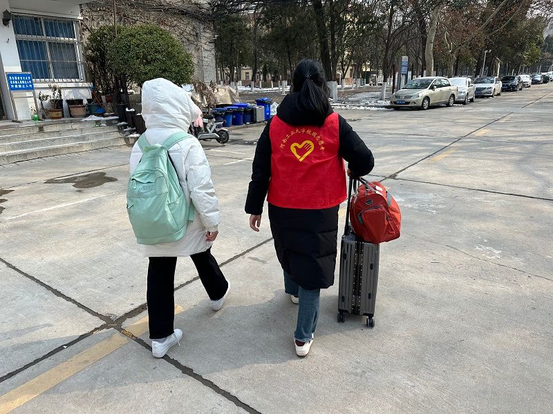 志愿者帮助同学们搬运行李