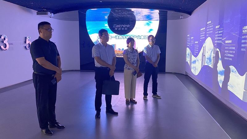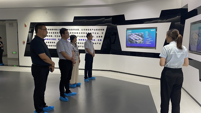 一行参观了豫信电子科技有限公司大事记展厅、中原大数据中心,听取了豫信电科的发展历程并详细了解了数据集团组建过程、河南省数据要素体系构建情况和发展情况。