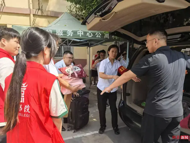 为了更好地送汪强同学去大学报到,9月3日晚,爱心人士张海洋,大河报驻马店运营中心赵鑫,网易新闻驻马店运营中心和牛哥家乡事栏目负责人刘铁牛提前来到了新蔡县城。9月4日,早上6点多,爱心人士张海洋驾车接到了汪强同学和他的妈妈。