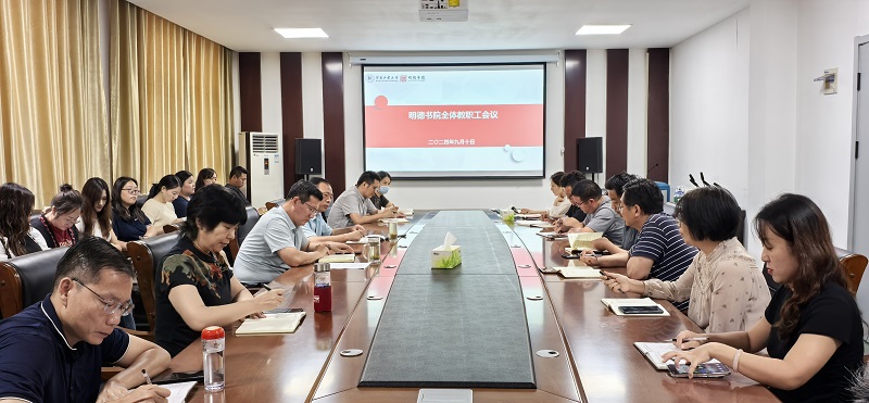 于9月10日下午在207会议室召开了全体教职工大会,传达落实学校党政工作要点,安排部署书院新学期重点工作。书院全体教职工参加会议,会议由党委书记魏朝举主持。