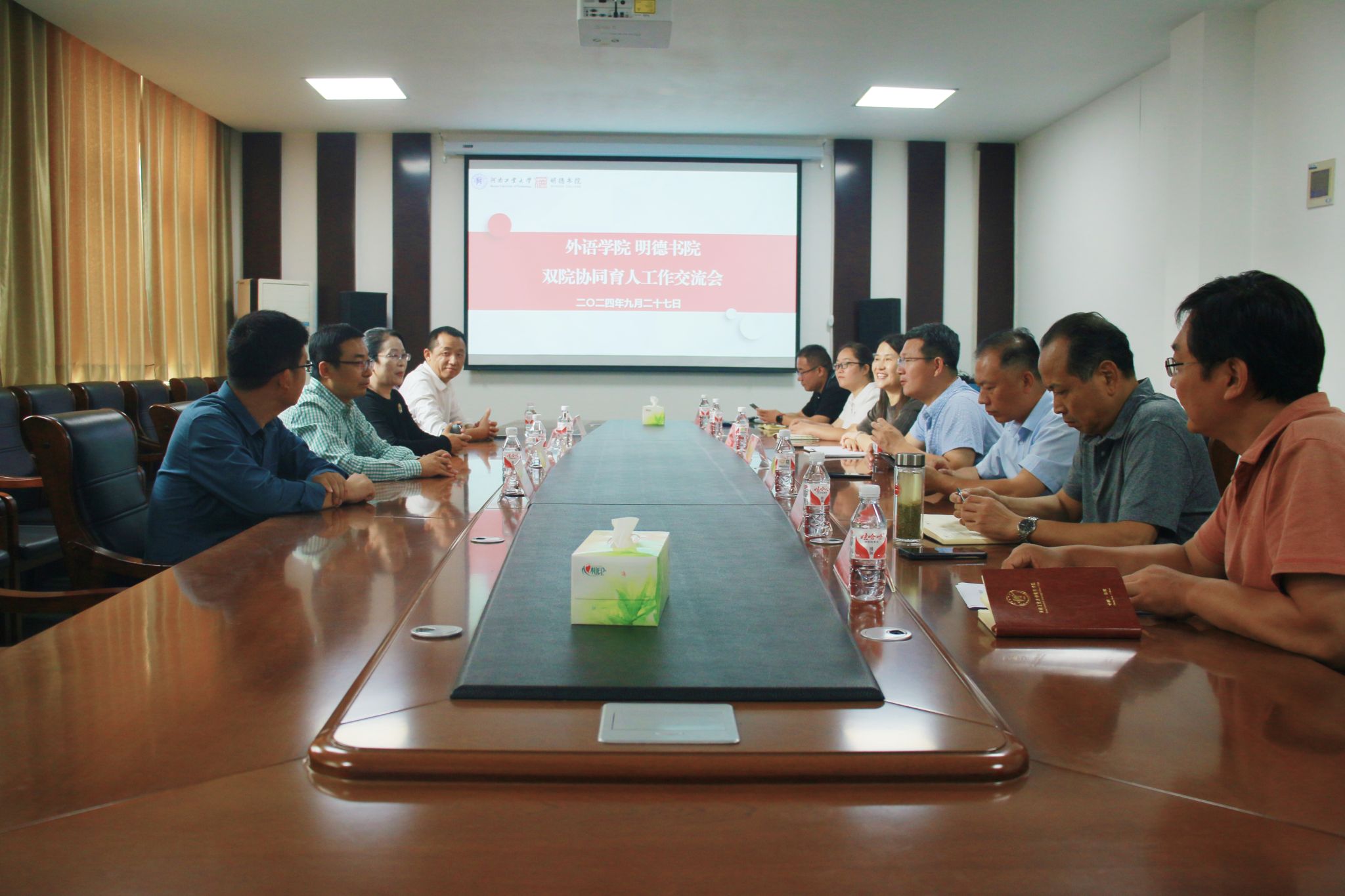 会议室召开了双院协同育人工作交流会,双方围绕人才培养、学生日常管理、教学督导、工作协同、学生活动等问题进行深入探讨。双方一致表示要进一步加强协作,整合学院和书院的资源,共同为学生成长发展提供更加全面完善的服务。
