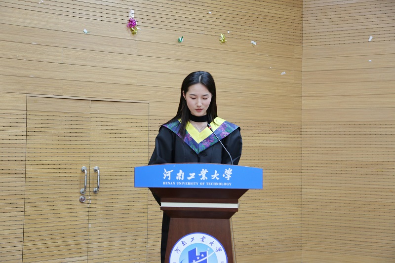 教师代表人工智能与大数据学院史卫亚副教授发言。他勉励全体毕业生要坚定理想信念,在时代浪潮中保持定力;要坚持创新发展,在专业领域勇攀高峰;要保持乐观向上的态度,在人生征途上披荆斩棘;要常怀感恩之情,在成长路上铭记师长教诲,以所学知识与优良品格,勇敢追逐梦想,在各自领域发光发热,传承工大精神,为母校增光添彩。
