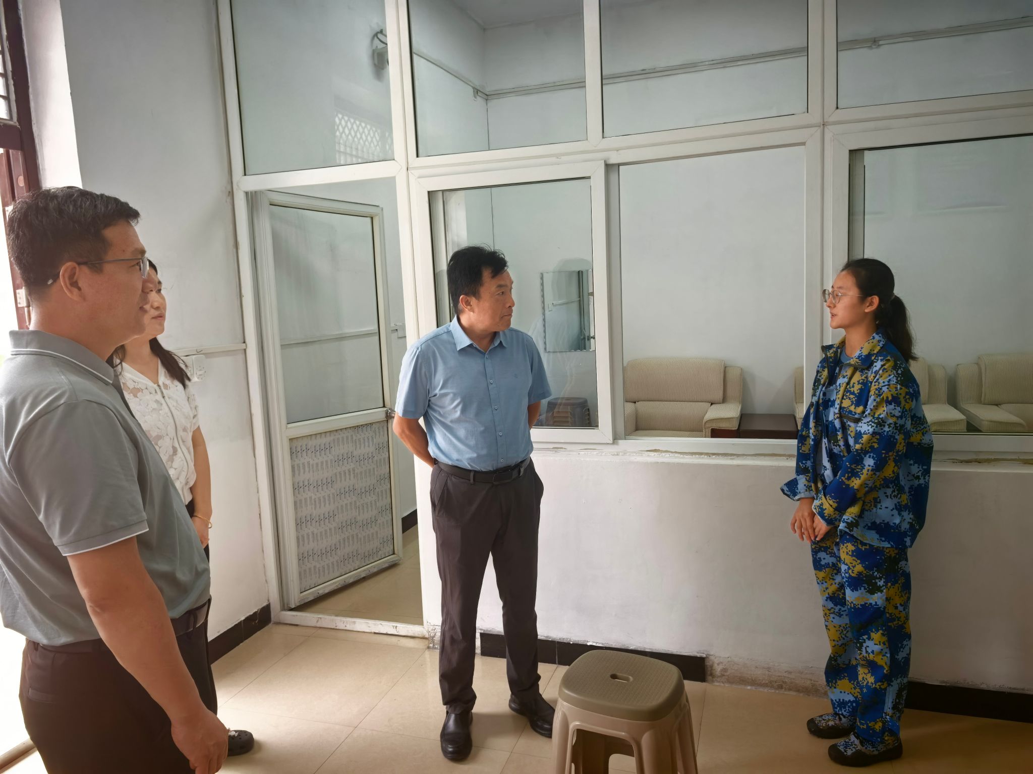 军训现场,亲切慰问正在参加军训的2025级新生及全体辅导员,深入了解军训工作开展情况,并代表学校送上节日的问候与关怀。