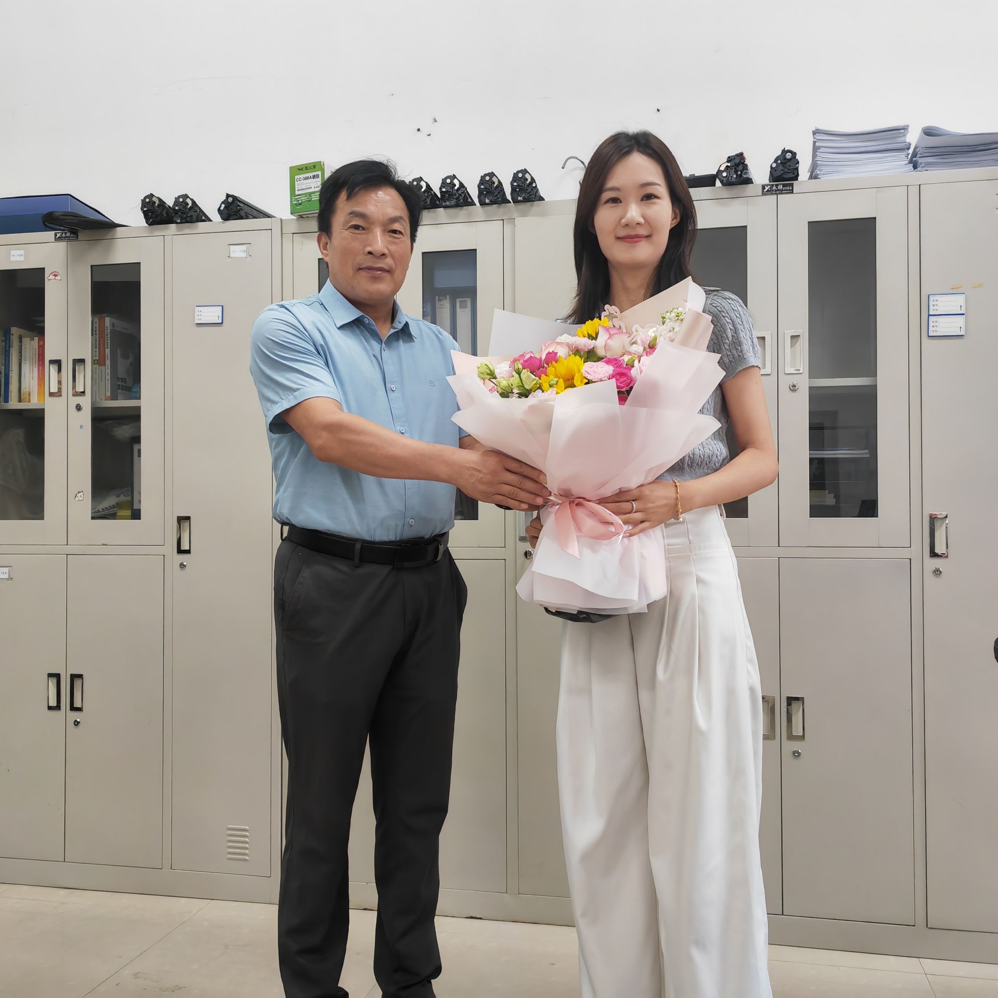 值此教师节之际,牛进平还专程看望了奋战在一线的全体辅导员,并为辅导员老师代表禹果送上了精心准备的鲜花和美好祝福。牛进平与老师们亲切交流,详细了解他们的工作和生活情况。他对辅导员长期以来在学生成长成才中所作出的努力与贡献给予充分肯定,并感谢他们为学校发展所付出的辛勤努力。同时,他也叮嘱书院要持续关注教师的成长与发展,积极营造良好的工作和生活环境。