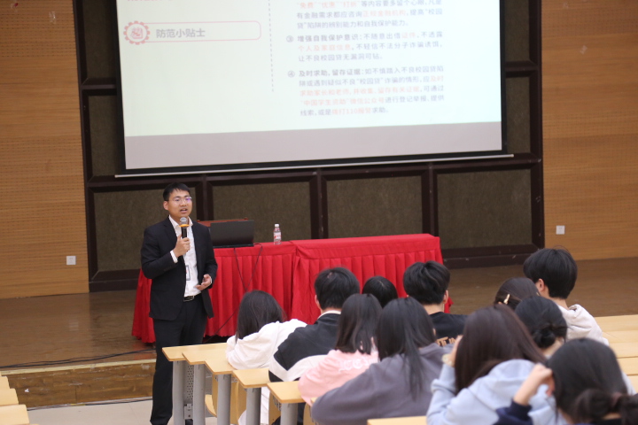 活动以“投资者教育进百校”为主题,韩站作为主讲嘉宾,聚焦四大核心模块展开深度分享:一是筑牢金融防诈“防火墙”,结合大学生群体高发的“虚假投资”“注销校园贷”等真实案例,警示学生守护财产安全;二是通过对比股市市场政策动向与教材理论差异,引导学子建立“政策-市场”双向分析思维;三是通过基金定投、资产配置等案例,倡导“长期主义”理财观;四是以校友身份分享个人成长经历和证券公司岗位职责要求,详尽地介绍了证券行业的职业发展路径以及该领域所需的各项技能,为同学们提供可落地的职业建设指南。