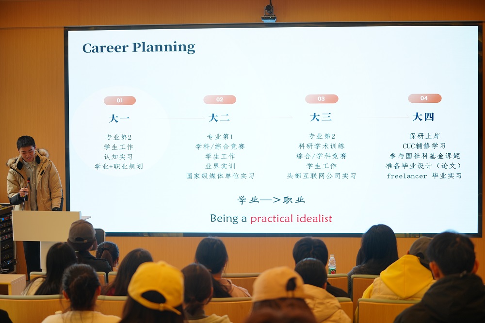 新传专业辅导员董雪甜主持。此次论坛围绕“考研保研,做好学涯规划”进行专题分享。新传专业的大一同学带着对未来的憧憬,积极参与到活动中来,收获颇丰。