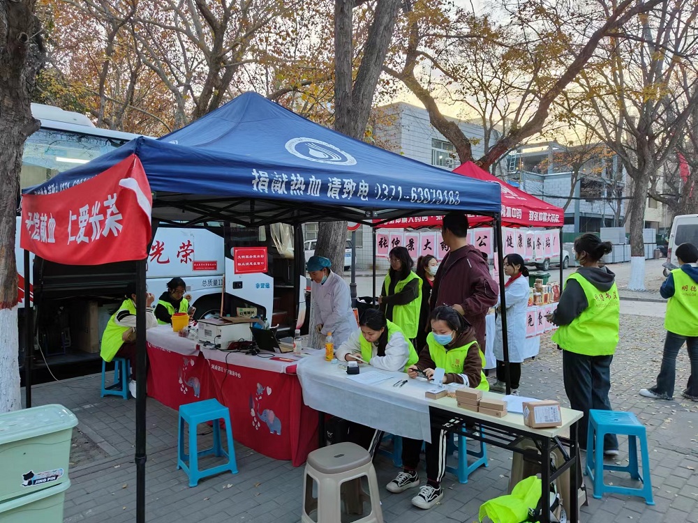 主办,青年V公益社团和经贸类专业年级委员会承办。本次活动总献血量达18000毫升,共接待63人。