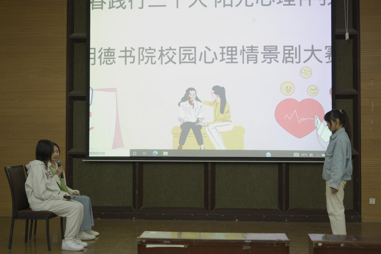心理情景剧大赛在小礼堂隆重开幕。本次活动主题为“青春践行二十大,阳光心理伴我行”。比赛邀请书院辅导员作为评委,并设计了小程序让观众进行现场投票。