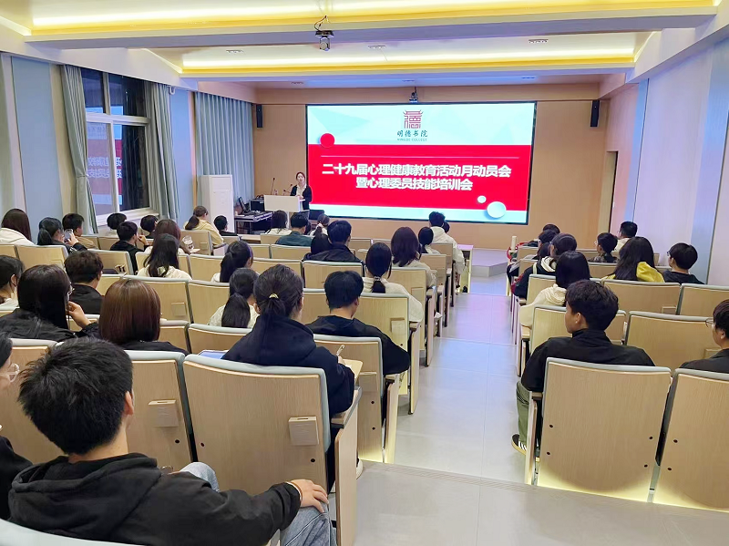 为进一步加强书院学生心理健康教育工作,增强工作实效性,明确班级心理委员的工作职责,做好学生心理危机预警,促进学生身心健康发展。10月17日,恰逢心理健康活动月开始之际,书院在实验楼118开展了第二十九届心理健康活动月动员会暨2024年秋季学期心理委员培训会,近100名心理委员参加此次培训。书院心理专干董雪甜主持培训会并作动员讲话。