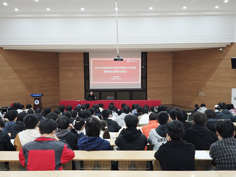 在学术报告厅召开了2024年高校助学贷款合同签订仪式暨感恩励志教育宣讲会。此次会议由书院资助工作负责人谷保材老师主持,书院团委书记刘振伟,全体高校助学贷款申请学生及资助助理参加此次会议。