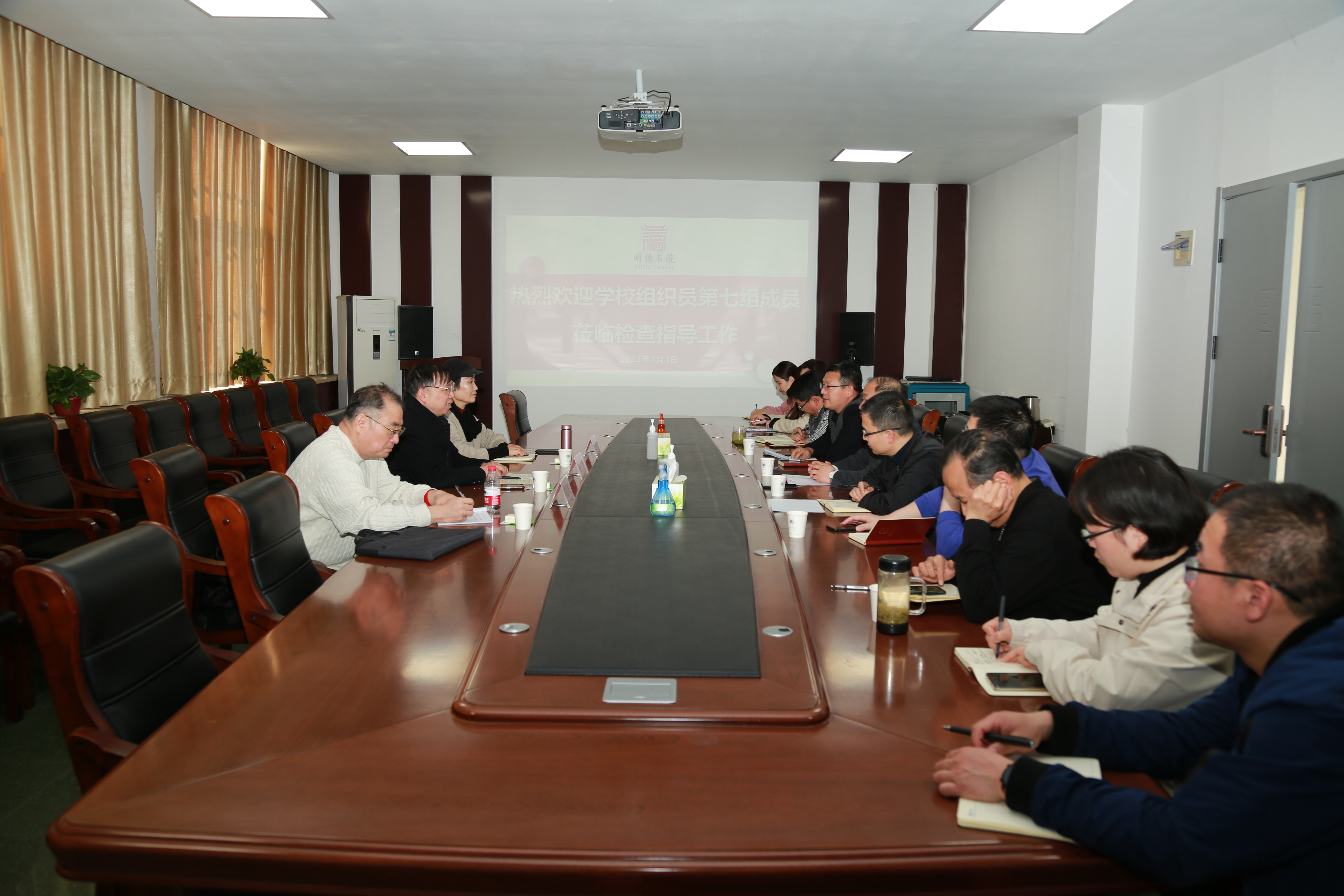 调研并指导党建工作。书院党政领导班子、各党支部书记陪同调研并参加座谈会,会议由书院党委书记魏朝举主持。