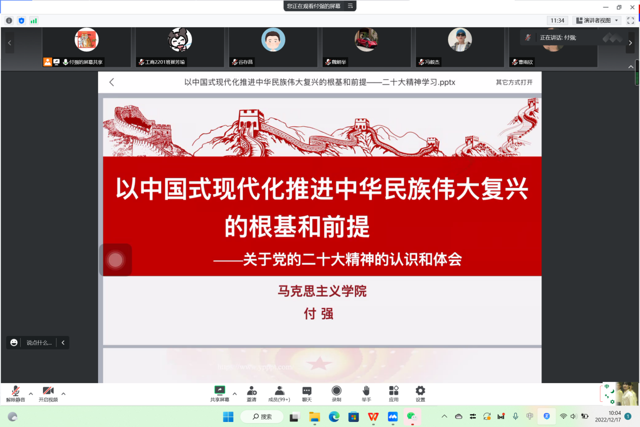 通过线上会议的形式举行了学习贯彻党的二十大精神宣讲会,学校“党的二十大精神宣讲团”成员、马克思主义学院付强博士应邀为书院师生党员作宣讲报告。宣讲会由院党委书记魏朝举主持。