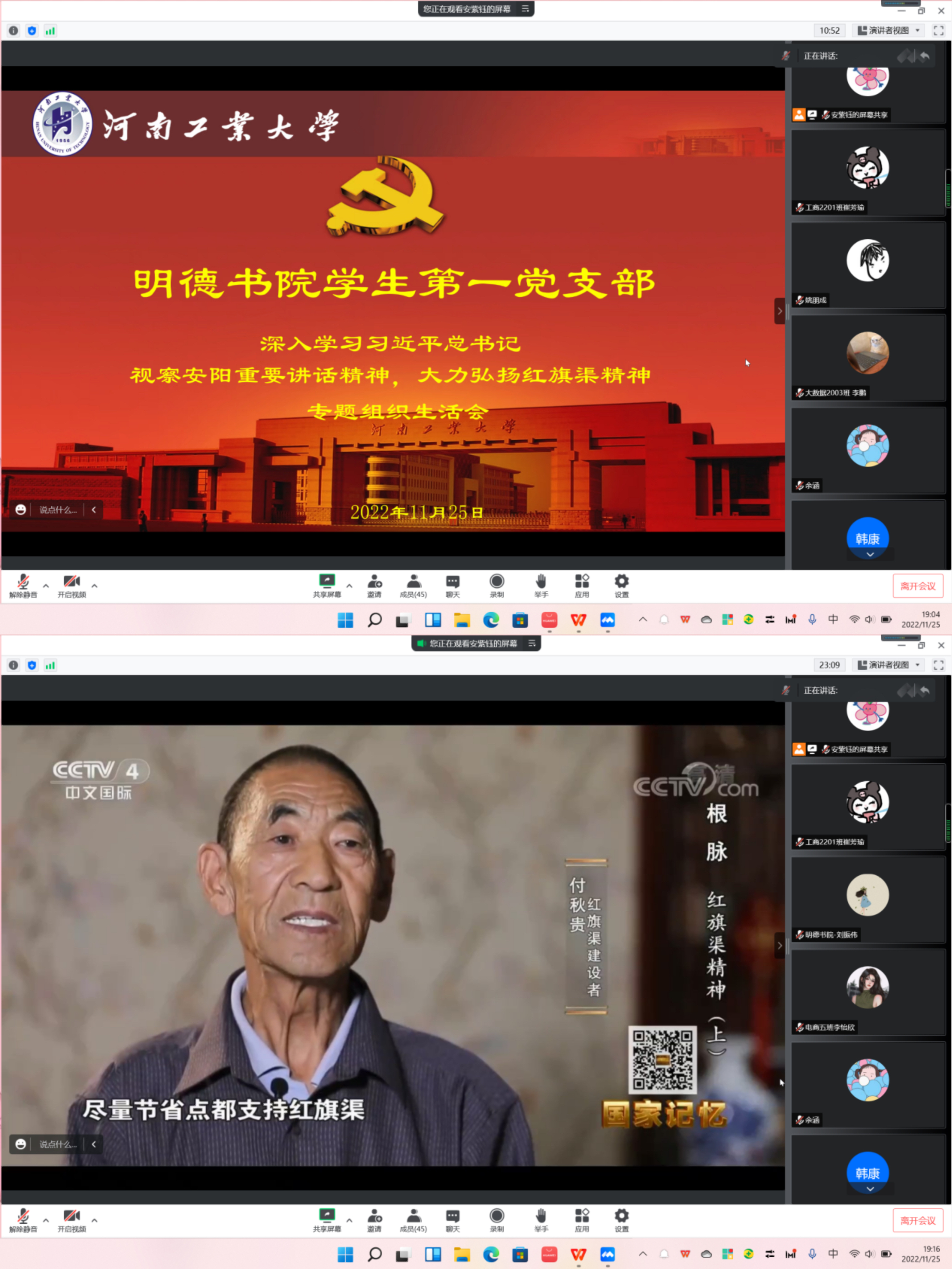 教工党支部、学生第一党支部、学生第二党支部及国防预备役党支部等四个党支部精心组织安排,带头深入学习习近平总书记视察安阳重要讲话精神,深入感悟红旗渠精神,并分别于11月25日、11月26日以“线上+线下”的模式组织召开专题组织生活会,欧美色情